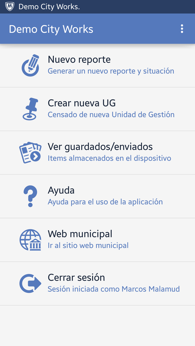 Si se realizan cambios, como nuevas calles o agregados en los tipos de UG, y cree que no los tiene actualizados, puede tocar el menú de 3 puntos de configuración y podrá realizar “Actualizar Base de Datos”.