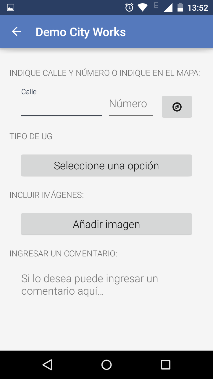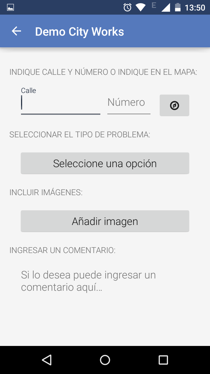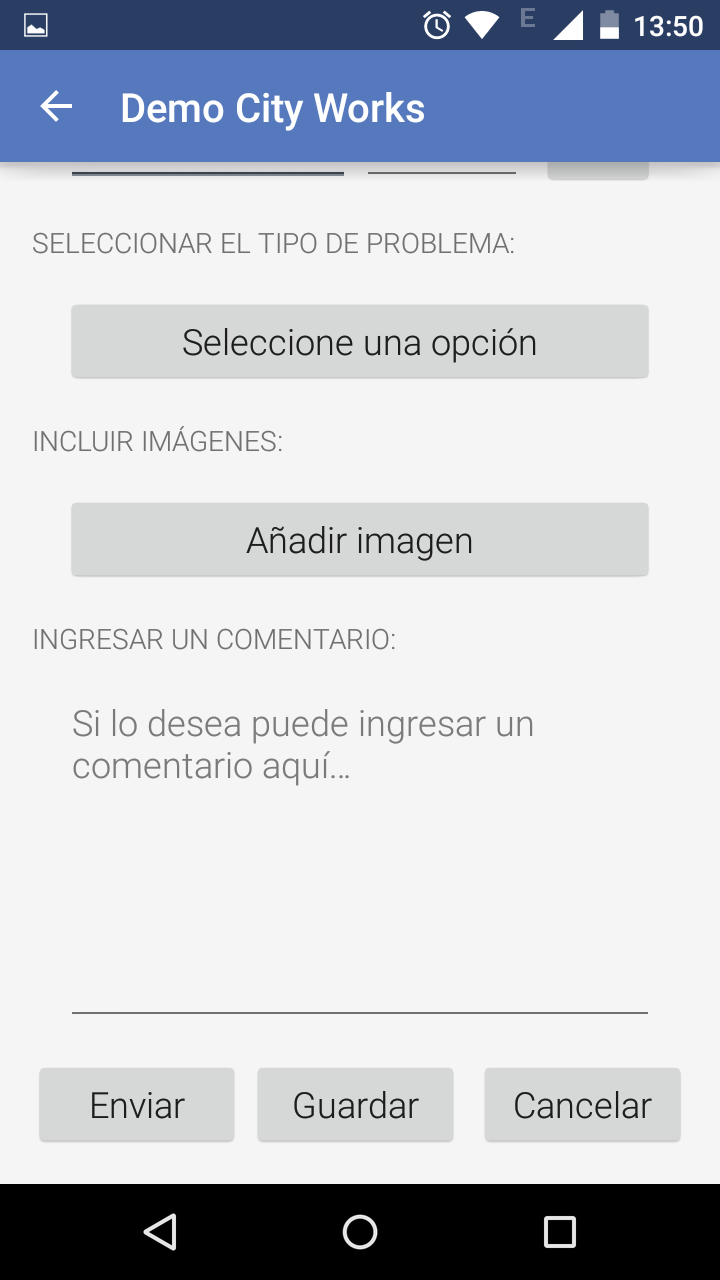 Para generar un nuevo reporte debe seguir los mismos pasos que en la versión Web del sistema, es decir, elegir un servicio, ubicar el reporte (mediante alguno de los 3 métodos posibles*), elegir una situación, una o varias fotografías (hasta 5 por vez) y en comentario.