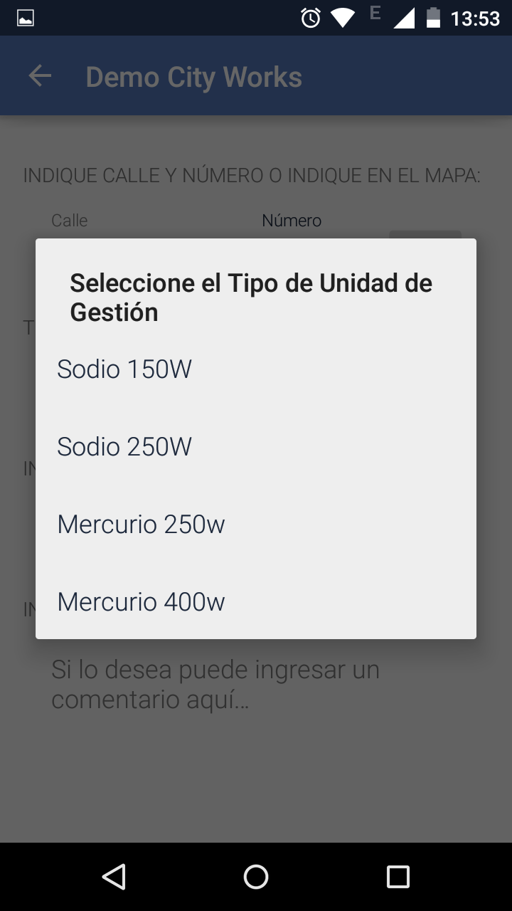 Luego de eso, deberá elegir un tipo de UG (son descripciones técnicas dentro del servicio elegido para censar), sacar hasta 5 imágenes, introducir un texto aclaratorio y enviar al servidor en tiempo real (también puede guardar y enviar luego, en caso que no tenga señal en el equipo durante el censado).